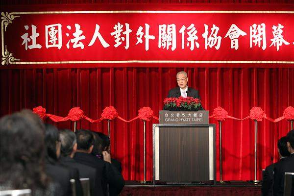 吳敦義副總統上午出席「社團法人對外關係協會」成立開幕典禮,期盼該協會能協助政府為貫徹「壯大臺灣、連結亞太、布局全球」等各項對外事務的發展而貢獻心力。