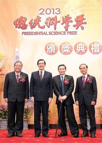 馬英九總統下午偕同吳敦義副總統出席在總統府舉辦的「2013年總統科學獎」頒獎典禮,親頒獎項予「數理科學組」彭旭明院士、「生命科學組」賴明詔院士及「應用科學組」盧志遠博士等三人,以表彰渠等為推動國家科學發展所付出的卓越貢獻。