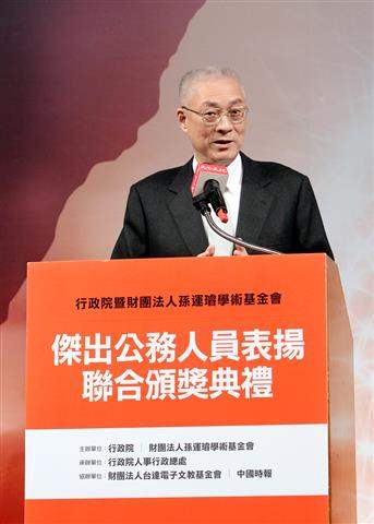 吳敦義副總統上午出席由行政院暨「財團法人孫運璿學術基金會」所共同舉辦的「102年傑出公務人員」頒獎典禮,適逢孫運璿百歲冥誕之際,除緬懷孫運璿資政過去對國家社會的重大貢獻,並期勉得獎者效法其精神,竭誠為國家社會貢獻心力。