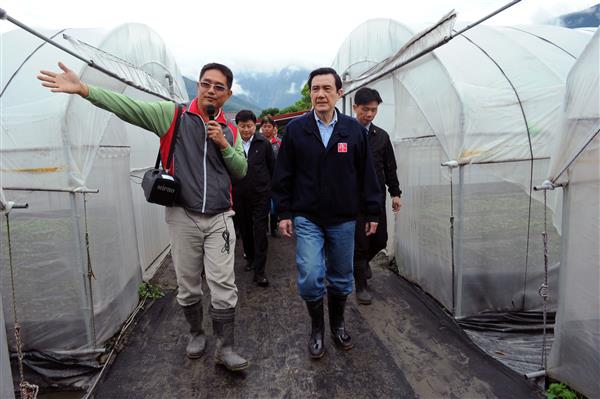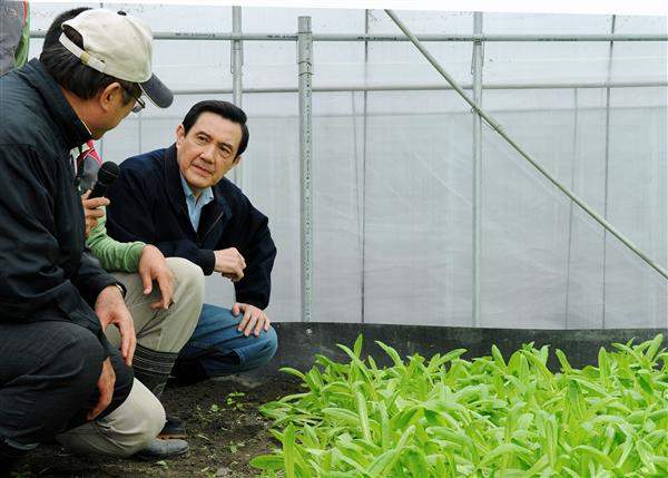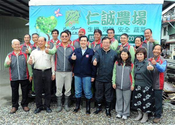 馬英九總統上午前往花蓮縣吉安鄉訪視「仁誠農場」,除肯定該農場產銷班成員用心栽種有機作物的努力,並說明政府推動「小地主大佃農」政策及農產品檢驗制度之具體成效。