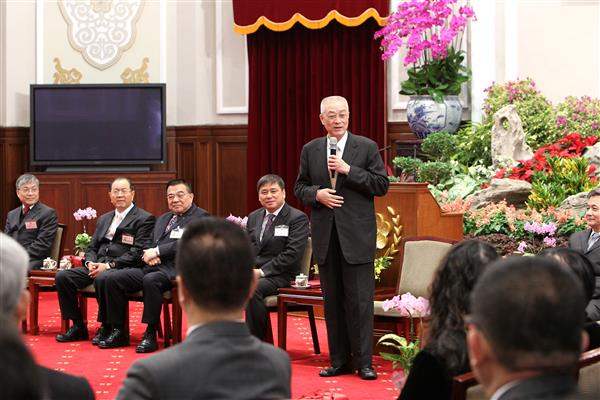 吳敦義副總統下午接見「中華民國藥師公會全聯會」新任幹部等一行,期勉與會者繼續與政府共同為建構完善的醫藥制度及維護全民健康貢獻心力。