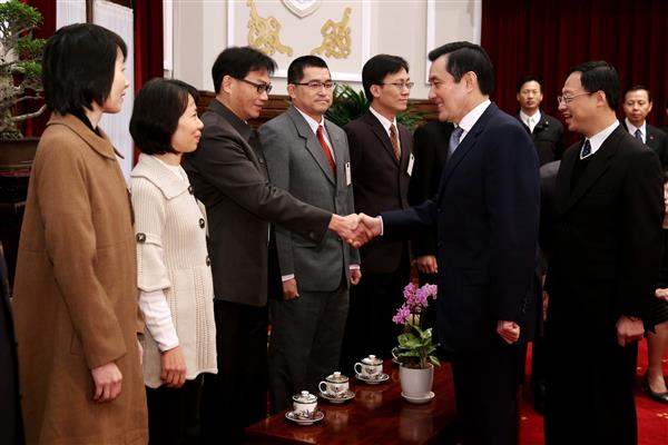 得獎者一行30餘人,由考試院長關中、秘書長黃雅榜及銓敘部部長張哲琛陪同,前來總統府晉見總統,行政院長江宜樺及行政院人事行政總處人事長黃富源等也在座。