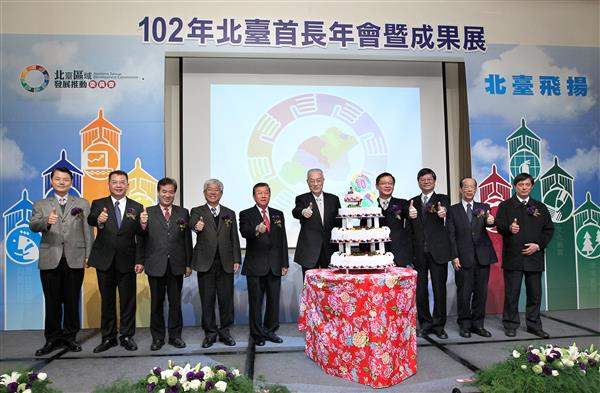 吳敦義副總統上午前往桃園縣出席「北臺區域發展推動委員會」102年首長年會暨成果展,除期盼北臺灣八縣市的合作更上層樓,共同為提升區域發展及增進人民福祉而努力,並主持「北臺區域發展推動委員會」明年輪值主政縣市首長交接儀式。