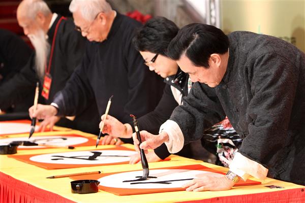 馬英九總統下午出席由臺北市政府主辦的「漢字文化節:臺北建城130、揮毫展新運」活動,並與臺北市長郝龍斌等開筆官共同揮毫,寫下「漢書傳文化、臺北耀古今」10字,期盼持續以正體漢字傳揚中華文化之美。