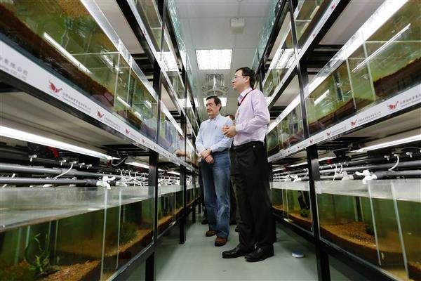 總統指出,例如瑞寶基金公司係農科園區之動物疫苗業者,所研發出「寬活豬生殖與呼吸道綜合症」的次單位疫苗,去年在臺灣的市占率高達六成;而臺灣福蝦公司則擁有亞洲最大的觀賞蝦繁殖場,培養賞心悅目的觀賞蝦,並推廣成潮流,此兩家公司所展現出來的活力與發展願景,令人嘆為觀止,大開眼界。