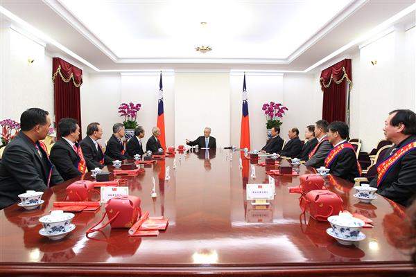 訪賓一行約20人,由「臺灣蘭花育種者協會」理事長賴本智率領,前來總統府拜會副總統,行政院農業委員會主任委員陳保基及農糧署長李蒼郎亦在座。