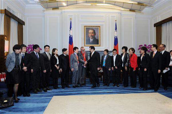 訪賓一行包括《經濟學人》亞太區總編輯高達德(Charles Goddard)、「韓國國民經濟諮詢會議」副議長玄定澤及「上海陸家嘴國際金融資產交易市場公司」總經理謝泓源等,由「天下雜誌群」創辦人殷允芃及國家發展委員會副主委陳建良陪同,前來總統府晉見總統,國家安全會議副秘書長鄧振中也在座。