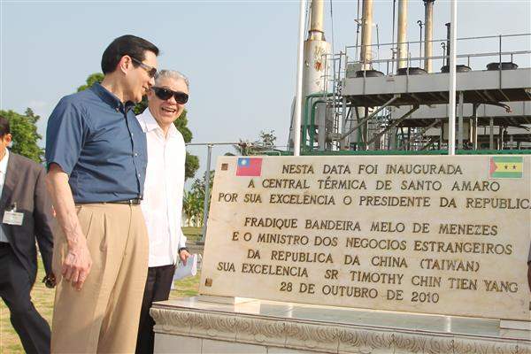下午,馬總統前往我協助聖國EMAE水電公司所興建的聖度瑪錄(Santo Amaro)電廠,除聽取「臺灣機電工程服務社」經理張文通簡報電廠運作概況,並在參觀發電機組控制室後,親自啟動發電機組開關,對該電廠有效解決聖國長期以來電力不足問題所做的貢獻,表達肯定之意。