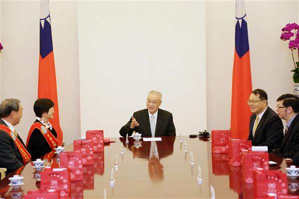 訪賓一行約15人,由「社團法人中華民國觀護協會」理事長程又強率領,前來總統府拜會副總統,內政部次長蕭家淇在場陪同。