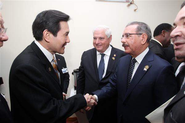 馬總統抵達會場後,隨即步上舞台元首區並就坐於第一排,科索沃總統亞雅加(Atifete Jahjaga)及多明尼加副總統阿布爾格爾格(Rafael Francisco Alburquerque de Castro)分坐兩側,馬總統並與渠等寒喧致意。