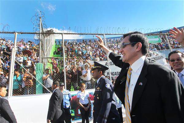 馬英九總統於宏都拉斯共和國當地時間1月27日上午8時30分(臺北時間1月27日晚間10時30分),由我訪問團成員國家安全會議秘書長袁健生、外交部長林永樂及我駐宏國大使郭永樑等陪同,抵達宏國國家體育場,出席該國新任總統葉南德茲(Juan Orlando Hernandez)就職典禮。