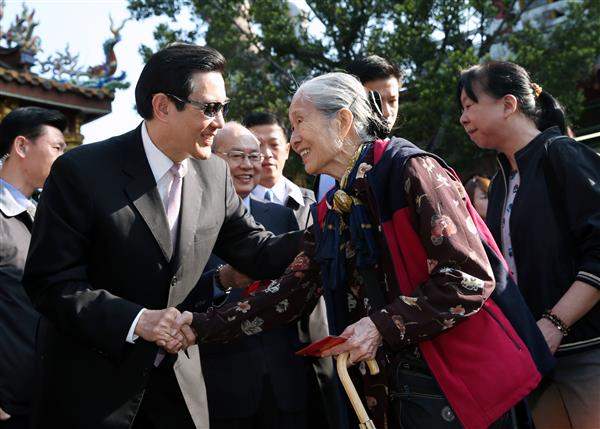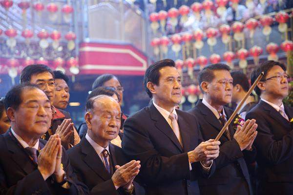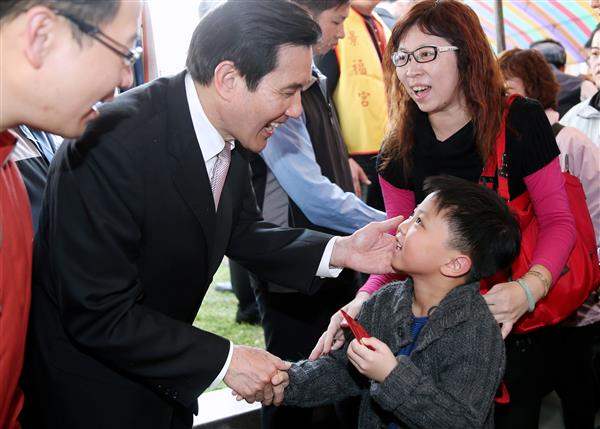 適逢農曆大年初一,馬英九總統今天先後前往臺北市大龍峒保安宮、新北市三峽祖師廟、桃園景福宮及基隆慶安宮等地祈福參拜,除發送馬年新春福袋向民眾拜年,並宣示政府拚經濟之決心,期厚實國家競爭力及提升臺灣經濟。