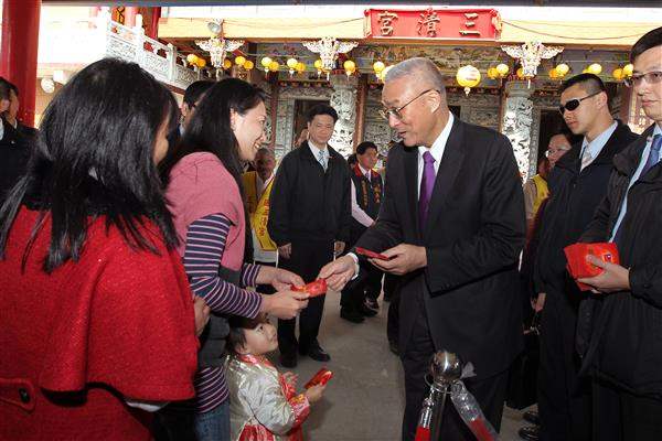 今天是農曆大年初一,吳敦義副總統伉儷前往南投縣11間寺廟祈福參拜、發送福袋及出席「集集燈會」點燈儀式,祝願國泰民安、風調雨順。
