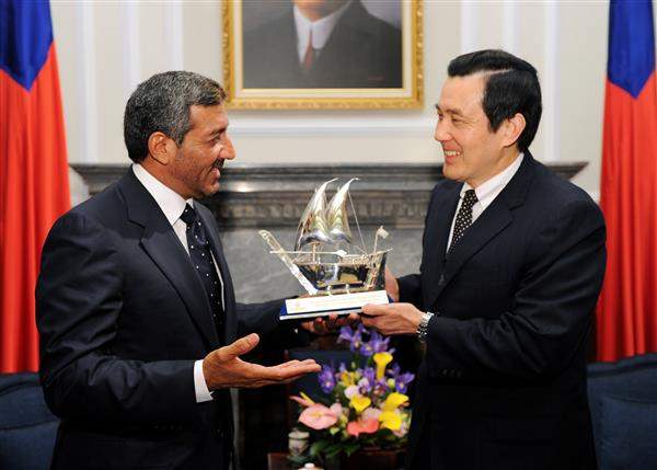 馬英九總統上午接見阿拉伯聯合大公國杜拜邦阿哈邁德(Ahmed Bin Saeed Al Maktoum)親王,除誠摯歡迎訪賓遠道來訪,並說明臺阿關係近年來之進展,希望能持續促進雙邊交流與合作。