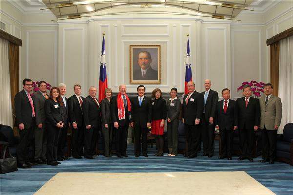 訪賓一行10餘人,由外交部次長石定陪同,前來總統府晉見總統,國家安全會議副秘書長張大同也在座。