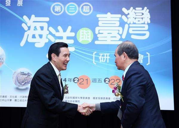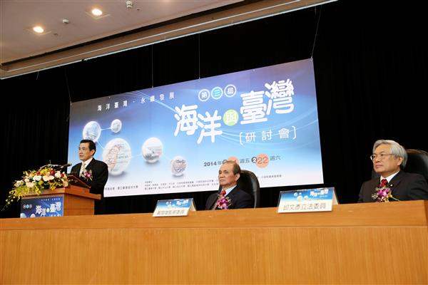 馬英九總統上午前往臺北市公務人力發展中心出席「第三屆海洋與臺灣研討會」開幕典禮時,說明我國近年來解決海洋爭議之具體作為及成果,並盼儘速成立「海洋委員會」,期落實「海洋興國、藍色革命」之理念。