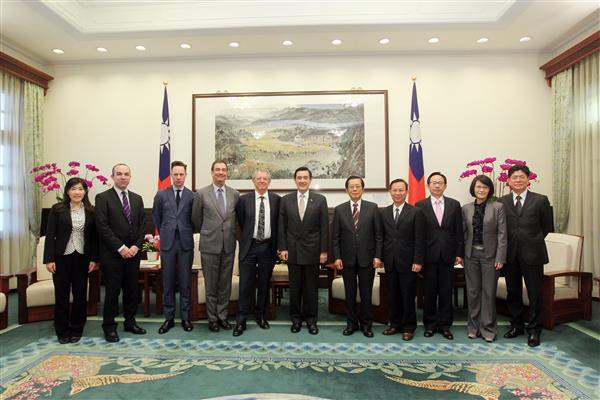 訪賓一行上午由「英國貿易文化辦事處」代表胡克定及我行政院環境保護署署長沈世宏陪同,前來總統府晉見總統,總統府秘書長楊進添、國家安全會議諮詢委員甘逸驊及外交部次長史亞平也在座。