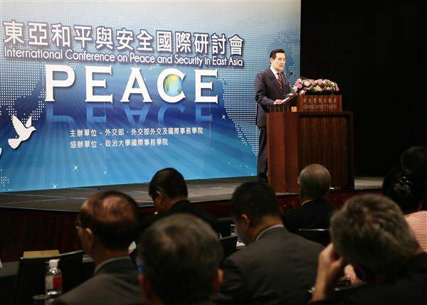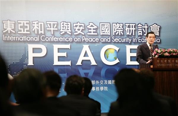 馬英九總統上午出席「東亞和平與安全」國際研討會,除說明我政府依循「東海和平倡議」(East China Sea Peace Initiative)的原則,以和平方式解決爭端所獲致的具體成果,並針對當前東海空域問題提出「東海空域安全聲明」,期促進區域和平與安定繁榮。