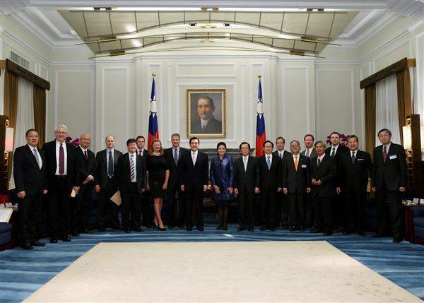訪賓一行包括美國「戰略暨國際研究中心」(CSIS)會長何慕理(John Hamre)、美國前聯邦參議員布朗(Scott Brown)伉儷、印尼國防安全研究機構執行長羅柯妮(Connie Rahakundini)、韓國峨山政策研究院主任申昌勛(Shin Chang-Hoon)、新加坡南洋理工大學所長盧福偉及英國倫敦政經學院主任胡克禮(Christopher Hughes)等,由外交部次長石定及國立政治大學國際事務學院院長李明陪同,前來總統府晉見總統,總統府秘書長楊進添及國家安全會議諮詢委員甘逸驊也在座。