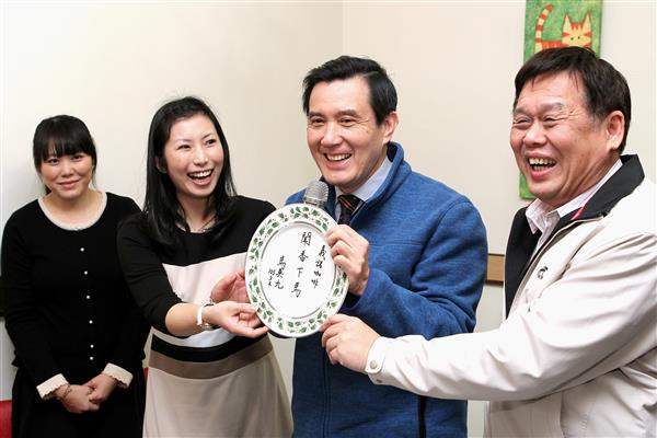 隨後,總統於店家使用之瓷盤上題詞--「聞香下馬」,表達對商家的鼓勵與支持。