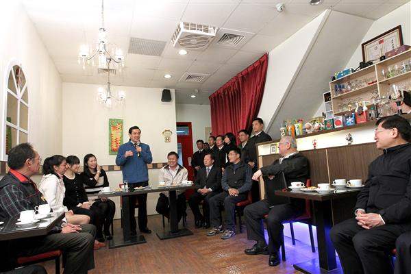 馬英九總統上午前往苗栗縣後龍鎮訪視勞動部微型創業鳳凰商家「義諾咖啡」,瞭解該計畫協助婦女創業之成果。