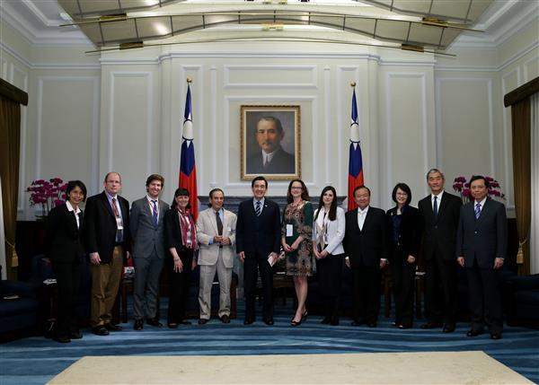 馬英九總統上午接見美國夏威夷「東西中心」2014年「亞太新聞獎助計畫」記者團,並說明政府近期在臺美及國際關係之各項進展。