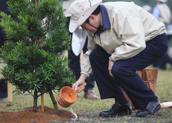 隨後,總統植下一株「蘭嶼羅漢松」,並於鐵鏟上簽名,贈予行政院農委會林務局以茲紀念。