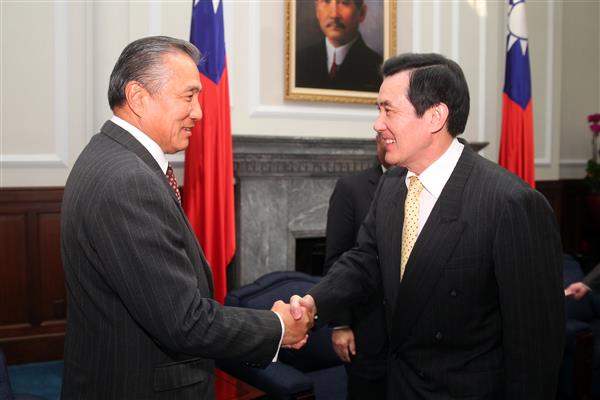 訪賓由前駐日代表馮寄台及外交部次長石定陪同,前來總統府晉見總統,總統府秘書長楊進添及國家安全會議副秘書長張大同也在座。