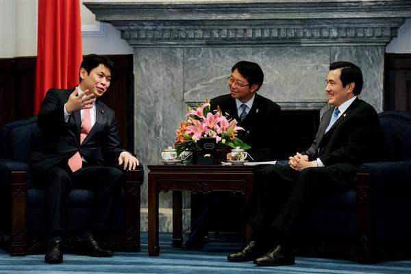 馬英九總統下午接見日本自由民主黨青年局局長松本洋平等一行,除誠摯歡迎訪賓來臺,並盼日本協助我國加入《跨太平洋夥伴協定》(TPP)及《區域全面經濟夥伴協定》(RCEP)。