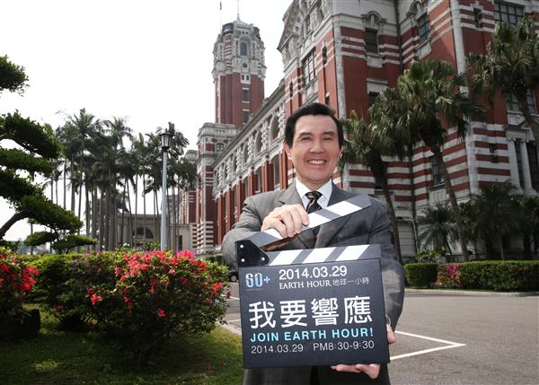 總統府將於3月29日(週六)晚間8時30分響應由「世界自然基金會」(WWF)發起、「中華民國荒野保護協會」主辦的2014臺灣地區「Earth Hour地球一小時」節能倡議活動。屆時,總統府將引領全臺各地指標性建物,與全世界各地知名地標,同步關閉外牆景觀照明燈光1小時,做為鼓勵全民重視節能減碳行動的示範。