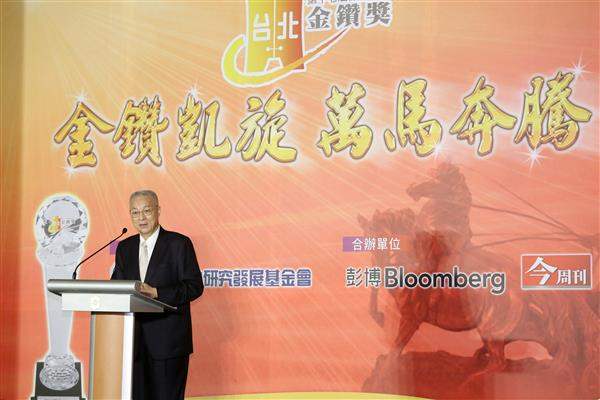 副總統致詞時首先肯定「臺北金融研究發展基金會」、《今周刊》及《彭博》(Bloomberg)公司合辦此一活動,並指出,「金鑽獎」自1998年首屆頒獎迄今,業已邁入第十七屆,由於遴選過程公平嚴謹且具公信力,秉持「寧可從缺,絕不從簡」原則,因此獲獎者均深獲社會各界肯定,殊值嘉許。