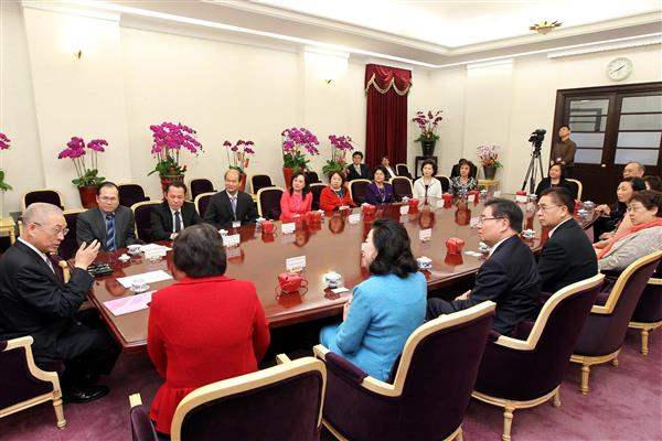 「國際華商協進會」會長陳趙滿菊率領訪賓一行10餘人,由行政院大陸委員會副主任委員林祖嘉陪同,前來總統府拜會副總統。