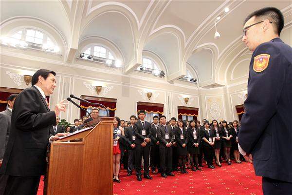 馬英九總統下午接見「103年青年獎章得獎人、社會及大專優秀青年代表」等一行時,除向青年獎章得獎人道賀,並為其他與會青年朋友打氣鼓勵,期許渠等為國家貢獻一己之力。
