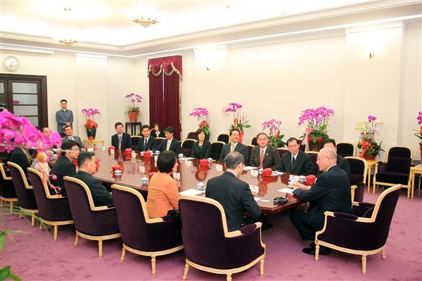 訪賓一行約20人,由「臺灣檢驗醫學發展協會」理事長吳進興及「中華民國醫檢師公會全聯會」理事長吳俊忠率領,前來總統府拜會副總統,衛生福利部次長許銘能亦在座。