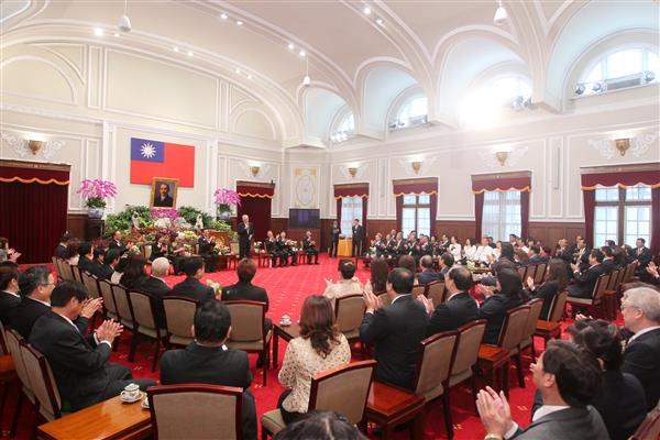 訪賓一行一百餘人由「國際獅子會」300-B1區總監陳朝茂率領,前來總統府拜會副總統。
