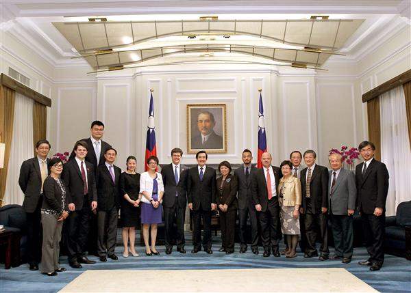 馬英九總統上午接見「國際特奧會」主席堤姆.施萊佛(Timothy Shriver)博士及東亞區總裁顧抒航一行,除誠摯歡迎訪賓來臺,並說明政府推動特奧運動之成果。