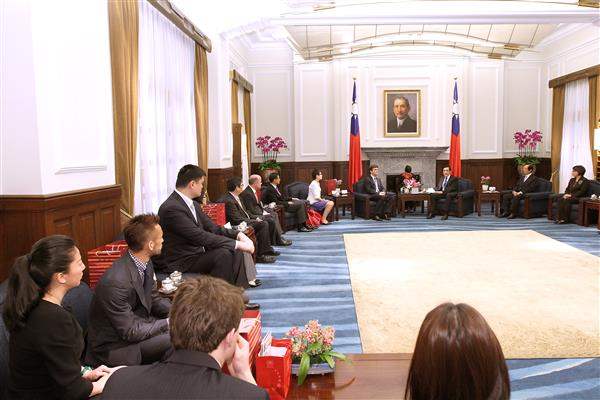 訪賓一行10餘人,由教育部體育署署長何卓飛及「中華臺北特奧會」理事長黃敏惠陪同,前來總統府晉見總統,總統府秘書長楊進添及國家安全會議副秘書長張大同也在座。