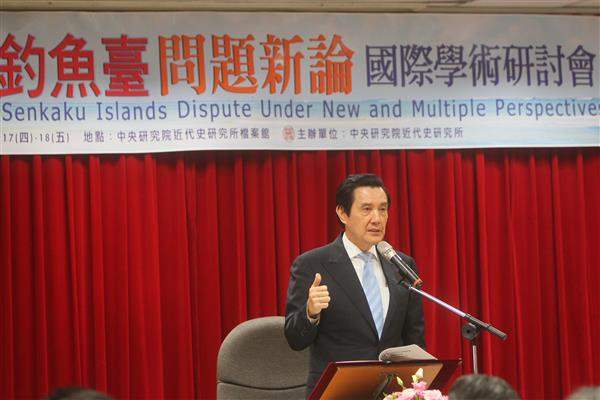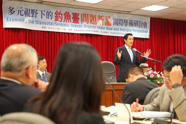 馬英九總統上午前往中央研究院出席「多元視野下的釣魚臺問題新論」國際學術研討會,除以歷史四大階段說明釣魚臺列嶼爭議之發展過程,並呼籲相關各方依據「東海和平倡議」及「東海空域安全聲明」解決爭端。