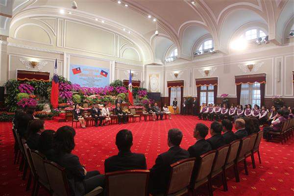 訪賓一行由「國際獅子會臺灣總會300-A3區」總監吳天寶率領,前來總統府晉見總統。