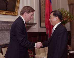 歐斯議員則表示,台灣政權移轉過程和平、民主,這在年輕的民主國家中是相當難得的;他並對我國在紐約遭受九一一恐怖攻擊後,勇往直前、毫無遲疑地支持美國表達誠摯的謝意。