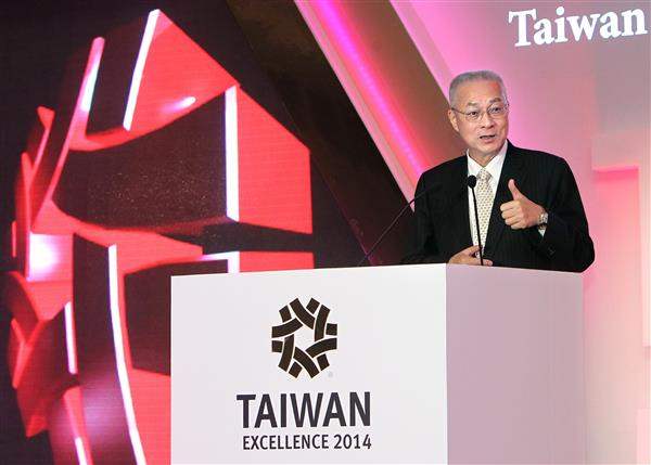吳敦義副總統上午前往臺北國際會議中心出席第22屆「臺灣精品獎暨金銀質獎」頒獎典禮,除向得獎業者表達祝賀之意,並期盼政府與企業界共同努力,讓臺灣精品在全球發光發熱。