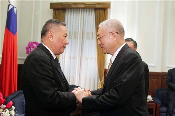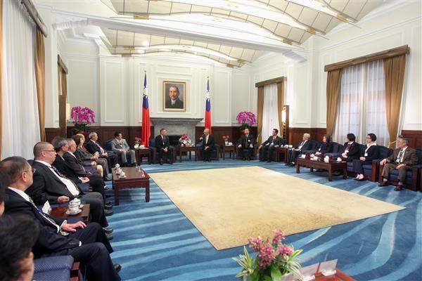 訪賓一行約30人,由紐約中華公所主席伍銳賢率領,前來總統府拜會副總統,僑務委員會副委員長呂元榮亦在座。
