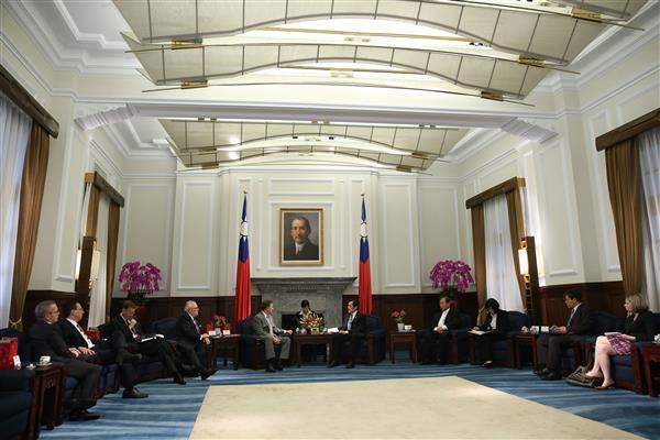 訪賓一行由「美國在臺協會」代理處長酈英傑(Brent Christensen)陪同,前來總統府晉見總統,國家安全會議副秘書長張大同及外交部次長史亞平也在座。