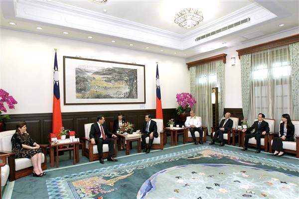 訪賓由監察委員趙榮耀陪同,前來總統府晉見總統,監察院院長王建煊及國家安全會議諮詢委員甘逸驊也在座。