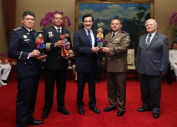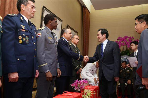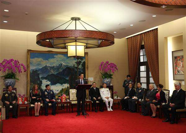 馬英九總統下午接見103年「遠朋複訓班」第9期學員暨眷屬,歡迎來自中南美洲及加勒比海地區九個國家的友邦高階軍警們遠道來臺,並說明我國改善兩岸關係及擴大國際參與之努力與成果。