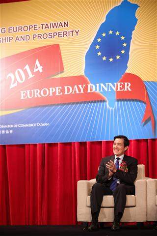 馬英九總統晚間出席「歐洲在臺商務協會」(ECCT)舉辦的「歐洲日晚宴」,除祝賀歐盟生日快樂,並盼雙方儘速簽署《經濟合作協議》(ECA)及《雙邊投資協議》(BIA)。