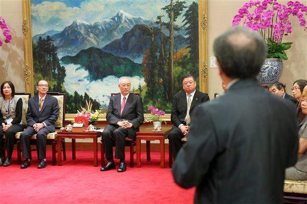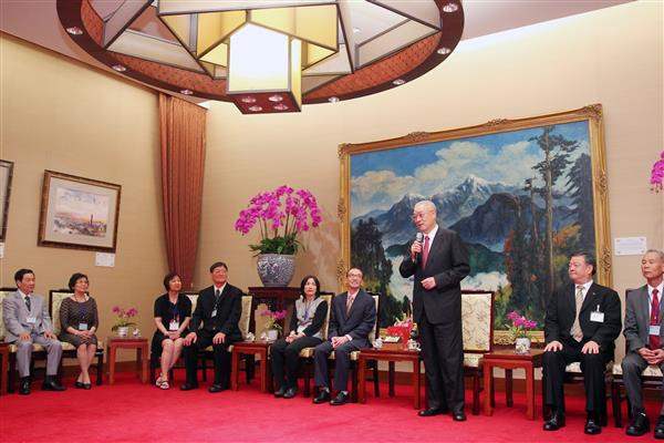 吳敦義副總統上午接見「芝加哥中華會館2014年回國參訪團」,代表馬總統誠摯歡迎訪賓回國參訪,除感謝與會者堅定支持政府,並期勉繼續與政府共同為中華民國永續發展貢獻心力。