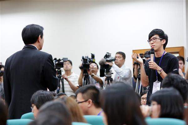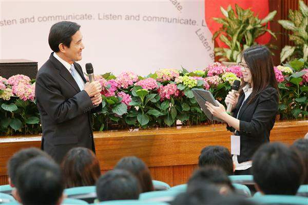 談及近來學生參與學運議題,總統肯定學生關心國是的理念,並舉他大學時期曾參與保釣運動之經驗為例,建議同學們可持續關心國是,但不要盲從、也不要冷漠,可抱持理想參與相關活動,但切勿跨越法律紅線。