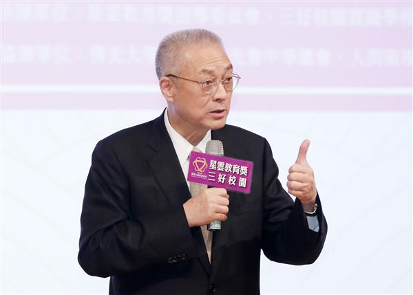 吳敦義副總統下午前往臺北市公務人力發展中心出席「第二屆星雲教育獎暨第三屆三好校園實踐學校」頒獎典禮,期勉國人持續發揚「做好事、說好話、存好心」的三好精神,共創和諧美好的社會。