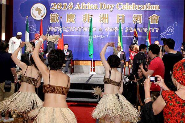 馬英九總統晚間前往臺北遠東飯店出席2014「歡慶非洲日」酒會,感謝非洲友邦在國際場合中替我發聲,並期盼未來臺非能拓展更多友誼及合作關係。
